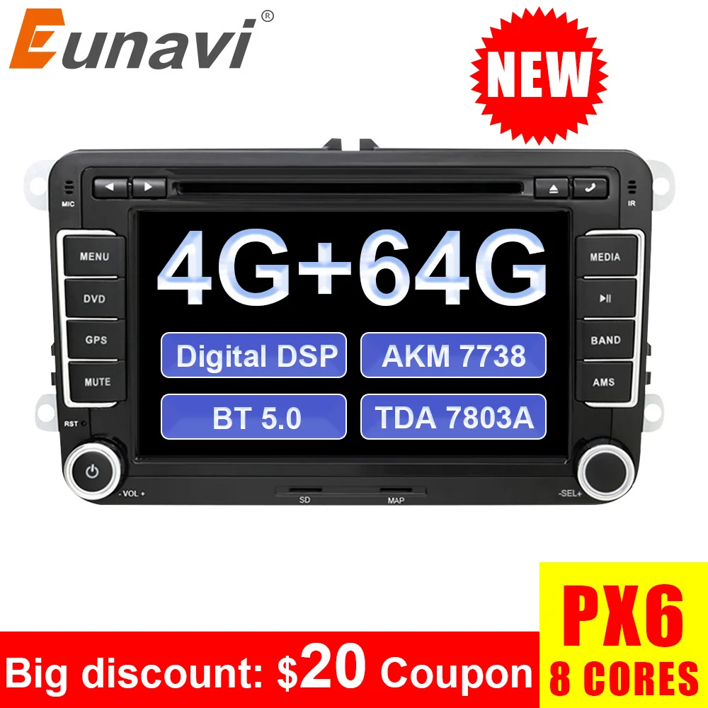 Eunavi 2 din Android 9.0 PX6 car dvd radio gps for VW Volkswagen Polo Jetta passat b6 b7 cc fabia skoda Touran golf 6 Tiguan DSP : Click Here