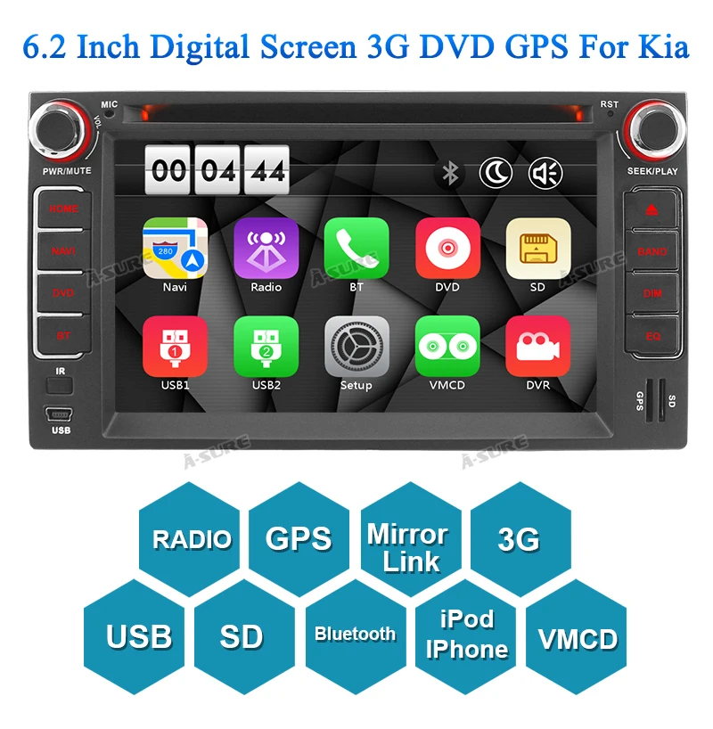 A-Sure 6.2'' 2 Din GPS for KIA Carens Carnival Rio SPORTAGE SORENTO CERATO Optima Ceed Picanto Spectra 3G WiFi DVD Radio : Click Here